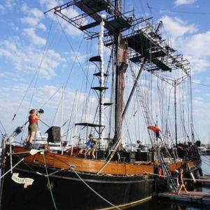 90 ft long, 22 ft beam, 4 ft draft. Steel hulled flat bottom, with new SS lee-boards. The masts: 90 ft main mast, 12 inch steel, top mast is part aluminum pipe, part laminated fir and 8" steel pipe sprit and 32 ft SS mizzen, are stepped in a tabernacle that can be manually lowered to go under bridges. Hardwood running decks on raised UHMW sleepers for water runoff. Main cabin deck and pilot house covered with cypress planking. Extensively refitted in 2020. 2 - 120 hp Perkins propulsion engines. 2 - Perkins 80 hp 32 Kw Gensets. 10 - 280 amp hour 8D batteries with 2 - 2000 watts Trace (Xantrex) Inverters Mastervolt battery charger that charge the battery bank. Electric systems are wired for North America & Europe with DC 12 & 24 volt, AC 120/240 volts, single & 3 phase and a dual 50/60 hertz. Radar, 2 GPS, 2 chart plotters, AIS, 2 VHF radio sets, depth sounder. 7 cabins, sleeps 20 people