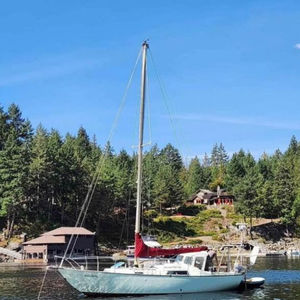 Sati is an Albin Marine (Swedish built) Scampi 30' Mk4; fibreglass fin keel single masthead sloop. 10' Beam, 6' draft and 30' overall length. Currently situated in Discovery Harbour Marina in Campbell River Propulsion: - Full set of sails; Storm Jib, Working Jib, 160% Genoa (which we normally use), Spinnaker, Main. - Yanmar 2YM15, 10HP inboard diesel, ~400hrs. Forward-mounted engine driving Hydraulic continuously variable transmission. - Engine sips fuel; rated at 2L/hr at 3000rpm. - 40L in-hull diesel fuel tank. - 10L reserve fuel container